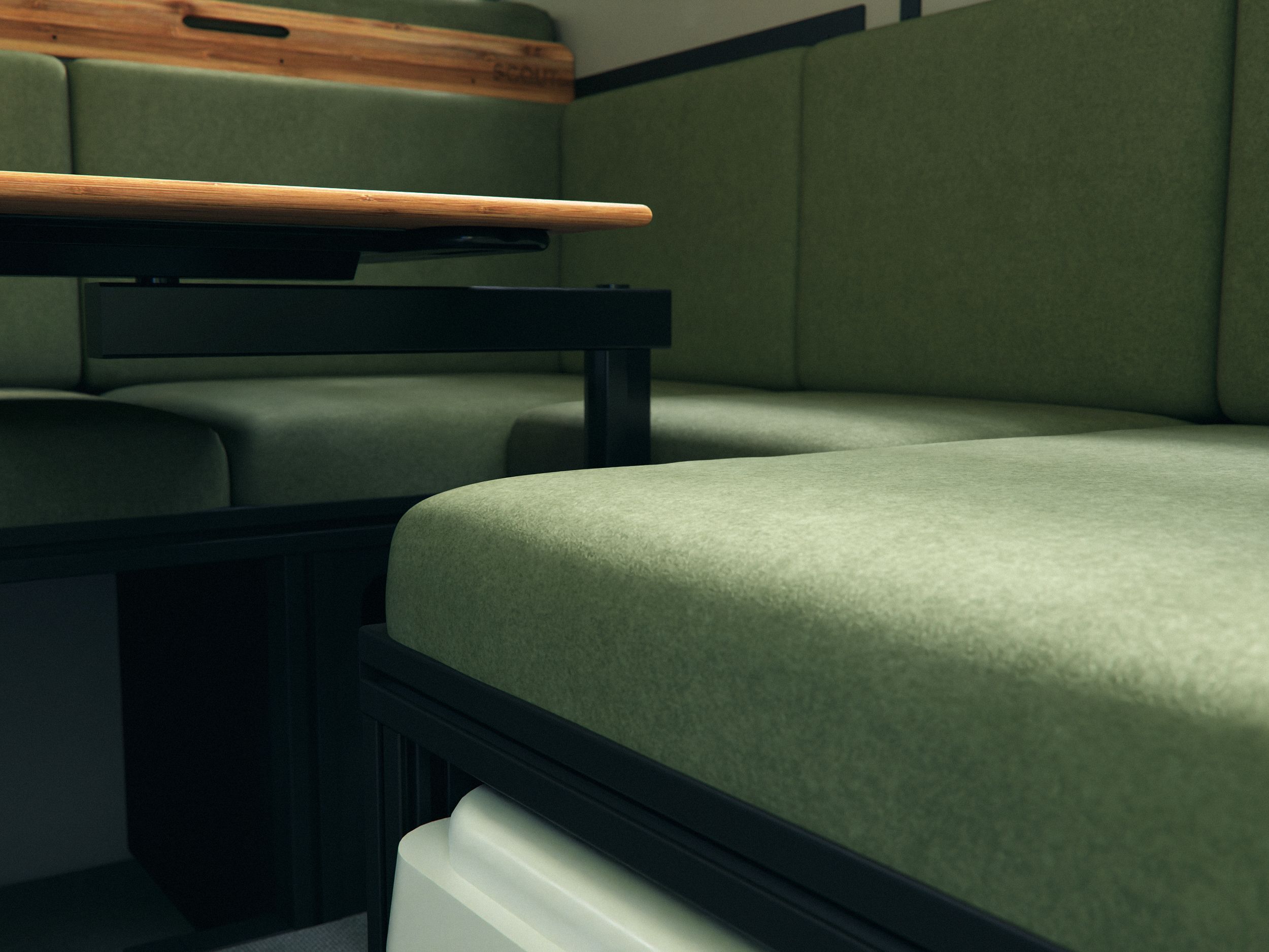 Inside the Yoho, you’ll find a commitment to sustainability and functionality. The camper features recycled paper cabinets that are durable, resin-reinforced, water-resistant, and eco-friendly. The expansive galley offers more counter space, a convertible lounge that seats four adults, and ample storage. It’s designed for comfort, convenience, and minimal environmental impact, making every adventure a responsible one.